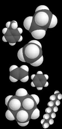 - Aromatiske kulbrinter, der har mindst én aromatisk ring (som en benzenring) ud over, hvad de ellers har af bindinger