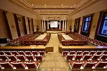 I bygningen er der et udstillingscenter, kontorkompleks, biografer, teater, og flere uddannelsesinstitutioner, blandt andet Collegium Civitas, endelig er der en række videnskabelige institutioner. Bygningen bruges ofte til messer og udstillinger, blandt andet en årligt tilbagevendende international bogmesse der har været afholdt siden 1958. I bygningen findes også en stor kongressal med plads til 3000 personer,