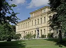 Humlegården tegnedes af arkitekten Gustaf Dahl og opførtes efter den nymodens støbejernsteknik. De to fløje tilføjedes 1926-27.