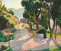 | ... han trak sine elever ved håret til Italien i håb om at hindre dem i at blive smittet af "franskneriet", og med det pauvre resultat, at de bagefter skrabede de zahrtmannske farver af paletteten og tog til Paris for at begynde forfra.[5] | ||