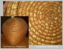 En med fletning beslægtet teknik er binding, hvor især halmbinding kendes. Her lægges halmen (eller andet fibermateriale) i et spiralmønster og sys sammen.