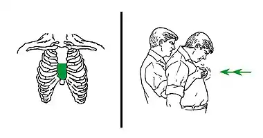 Hvis offeret ikke kan hoste,[1] nårså brug de to teknikker i hånden (se begge billeder nedenfor).