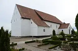 Kirkegården ligger rundt om kirken, og skråner ned fra denne. Kirkegården er omkranset af gamle lindetræer og tjørnehække på kampestensdiger. På kirkegården er der mindesten over 37 sogneboere der faldt i krigen 1914-18.