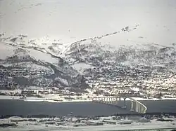 ![]() Kvaløya med Sandnessundbroen over til Tromsøya | |