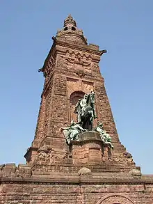 Monumentet blev rejst for at markere samlingen af det tyske rige, der fandt sted i disse år. Det forestiller den tysk/romerske kejser Frederik I, bedre kendt som Frederik Barbarossa samt ovenover dette en 11 meter høj bronzestatue, der forestiller Kajser Wilhelm I.