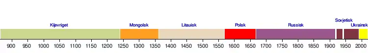 I 1240 blev Kyiv erobret og ødelagt af mongolerne. Fra 1362 var byen en del af Storfyrstendømmet Litauen. I 1492 gav Alexander Jagiellon Magdeburgrettigheder. I 1569 blev byen til provinshovedstad i riget Polen-Litauen. Kyiv blev tildelt status som den kongelige by af den polske krone. Fra 1667, en del af Rusland, som bekræftet i fredsaftalen i 1686. I 1708 blev byen til provinshovedstad i Rusland. Under krigen mellem 1917 og 1920 var byen i hænderne på ukrainere, røde (bolsjevikker), hvide (bolsjevikkernes modstandere), tyskere, ukrainere og polakker. Fra 1917 til 1920 eksisterede den uafhængige Ukrainske Folkerepublik, som efter de rødes erobring blev erstattet af en russisk lydstat, den ukrainske sovjetrepublik, der fra 1922 indgik i Sovjetunionen.