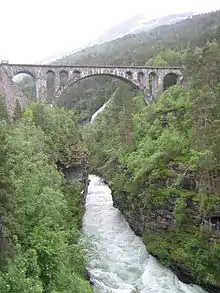 Broen er 76 meter lang og bygget i sten fra de nærliggende bjerge. Stenen som er brugt er en granittype der kaldes Gruogranitt. Højden over dalbunden og floden er 59 meter. Hovedspændet er 42 meter, sidespændene ti og otte meter.[1] Broen er bygget i en kurve, da den ligger i et sving på jernbanen.