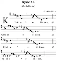Kyrie XI ("orbis factor")— Kyrie opsat som Gregoriansk sang—fra Liber Usualis