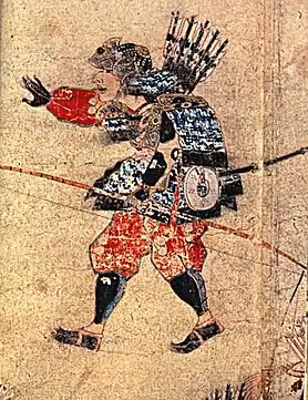 Selvom samuraierne er bedst kendt for deres anvendelse af katana (samuraisværd), har bue og pil alle dage været det foretrukne våben på slagmarken. Bue og pil begyndte først langsomt at tabe sin effektivitet efter indførelse af skydevåben fra Portugal i midten af 1500-tallet.[6]