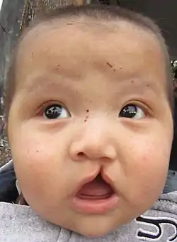 | Læbe-gumme-ganespalte ('kombineret spalte') | Ca. 40 % | Ca. ⅔ drenge |