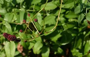 Blomstringen sker i juni-august, hvor man finder blomsterne samlet i endestillede, ovale aks. De enkelte blomster er 4-tallige med et enkelt sæt mørkt brunrøde blosterblade. Frugterne er små nødder.
