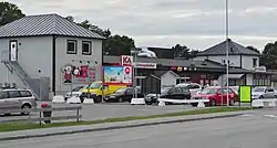 Butikstorv med korsets Kupan, elbutik og Systembolaget
