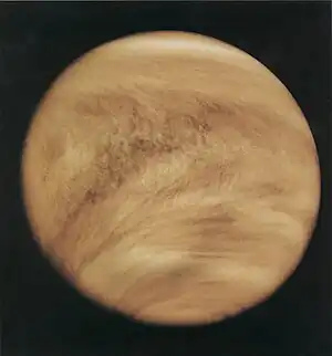 Det antages generelt, at en løbsk drivhuseffekt fandt sted på Venus, hvilket førte til fordampning af muligvis eksisterende vandhav. Jorden og Venus er sammenlignelige planeter på mange måder. De har omtrent den samme diameter og den samme masse. Allerede i 1970 kunne Rasool og De Bergh vise, at Venus' nærhed til solen udløste en løbsk drivhuseffekt.[1] At fordampe visse mængder vand gennem denne nærhed (og dermed varme) udgør ikke i sig selv en drivhuseffekt, men vanddamp, som CO2, fungerer som en drivhusgas. Dampen medfører yderligere opvarmning, hvilket igen medfører yderligere fordampning af flydende vand. "Løbsk" her er den selvforstærkende virkning, som i sidste ende har ført til en fuldstændig fordampning af vandhavene. I dag er det atmosfæriske tryk på Venus ca. 90 gange stærkere end på Jorden; ligevægtstemperaturen uden atmosfære ville være 34 ° C, men på grund af drivhuseffekten er 465 ° C. Til sammenligning: Drivhuseffekten på jorden hæver temperaturen fra teoretisk -18 ° C uden atmosfære til et gennemsnit på ca. 14 ° C (præindustriel) eller i øjeblikket ca. 15 ° C.[2] Den løbske drivhuseffekt kaldes derfor undertiden Venussyndrom.[3]