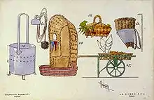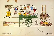 Rekvisitter til anden akt af La Bohème. Fra urpremieren.