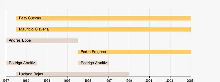 - Rodrigo Aboitiz: Keyboards (1987-1990; 1994-1998)