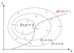 En Lagrange-multiplikator bruges til at finde ekstrema - dvs. maksimum eller minimum - for en funktion givet en til flere sidebetingelser.[1]