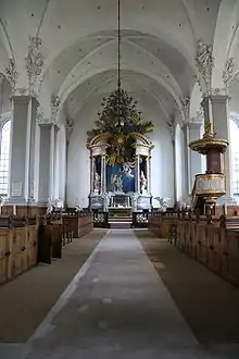 Nørreport (1671); Fuldførelse af Sofie Amalienborg Slot (c. 1670-75; tilskrevet); Ombygning af +Det blaa Lysthus* (senere Herculespavillonen) i Kgs. Have (1671-72); +Lysthuset med de 4 Knapper* sst. (c. 1672, samme indgaaet i Gardens Kaserne); Rosenborg-Porten mod Østervold (1672); den oprindelige Kommandantbolig ved Rosenborg (1672, komplet ombygget af Fortling); Byggearbejder paa Griffenfelds Gaard paa Købmagergade (1671-75) og det Griffenfeldske Kapel ved Helligaandskirken; Projekt til nyt Kongeslot paa Slotsholmen (1680erne, kendt især gennem Tegning og Beskrivelse af N. Tessin d. Y.); Charlottenborgs Østfløj med Kuppelsalen (ml. 1680 og 83; tilskrevet); Ombygning af Lundehave, det senere Marienlyst (1682); Frelsers Kirke paa Chr.havn (grundlagt 1682, ændret Projekt til Spiret 1690); Konseilsalen og Løngangen paa Fr.borg (1680-87); Niels Juels (senere Thotts) Palæ paa Kgs. Nytorv (1683-86; tilskrevet); Kronværksporten paa Kronborg (1690); Juellund (1695, nedbrudt 1918; tilskrevet). Skulpturarbejder: Udkast til Gravmæler bl.a. over Niels Rosenkrantz i Trinitatis Kirke (1676, ødelagt 1728) og over Niels Juel i Holmens Kirkes Kapel (senere ændret; tilskrevet); Tegn. til Fr. III.s og Sophie Amalies Sarkofager i Roskilde Domkirke; Udkast til Altre i Trinitatis Kirke (brandt 1728) og til Frelsers Kirke (ikke udf.) samt til Fontæner paa Jægersborg (1673-75); Udkast til Buste af Chr. V (Rosenborg).