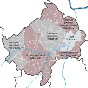 ![]() Lage des Landkreis Bad Kreuznach in Rheinland-Pfalz (anklickbare Karte) | |