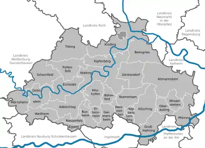 ![]() Beliggenheden af Landkreis Eichstätt i Bayern (klikbart kort) | |