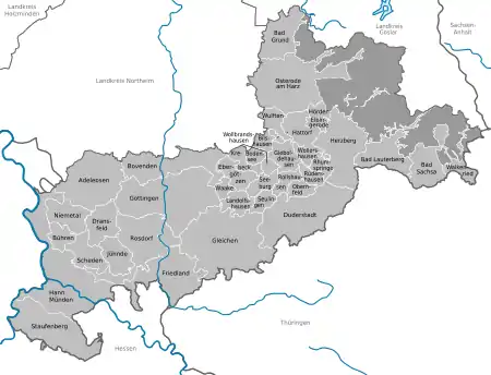 ![]() Lage des Landkreis Göttingen in Niedersachsen (anklickbare Karte) | |