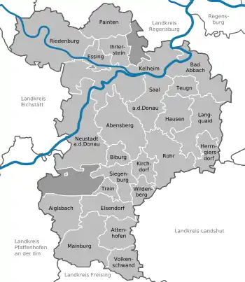 ![]() Beliggenheden af Landkreis Kelheim i Bayern (klikbart kort) | |
