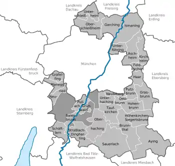 ![]() Beliggenheden af Landkreis München i Bayern (klikbart kort) | |
