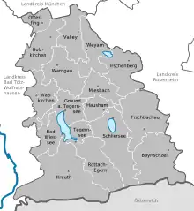 ![]() Beliggenheden af Landkreis Miesbach i Bayern (klikbart kort) | |
