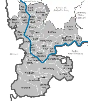 ![]() Beliggenheden af Landkreis Miltenberg i Bayern (klikbart kort) | |