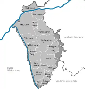 ![]() Beliggenheden af Landkreis Neu-Ulm i Bayern (klikbart kort)  | |