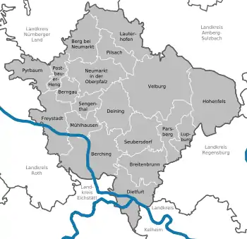 ![]() Beliggenheden af Landkreis Neumarkt in der Oberpfalz i Bayern (klikbart kort) | |