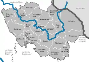 ![]() Beliggenheden af Landkreis Regen i Bayern (klikbart kort) | |