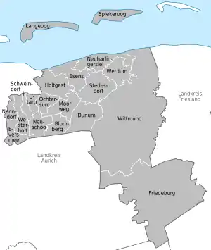 Til landkreisen hører, ud over kommunerne på fastlandet også de to Østfrisiske øer Langeoog og Spiekeroog. En stor del af fastlandet omfatter det historiske område Harlingerland.