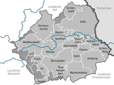 ![]() Beliggenheden af Landkreis Wunsiedel im Fichtelgebirge i Bayern (klikbart kort) | |