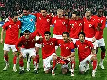 Fx Danmarks fodboldlandshold, Danmarks basketballlandshold og Danmarks håndboldlandshold.