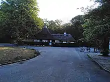 Bomhuset i Den Fynske Landsby er oprindeligt opført i Langeskov på landevejen mellem Nyborg og Odense. Rejsende skulle betale ved bomhuset for at køre på den i 1820 åbnede chaussévej. Huset var i anvendelse som bomhus frem til 1850.[6]