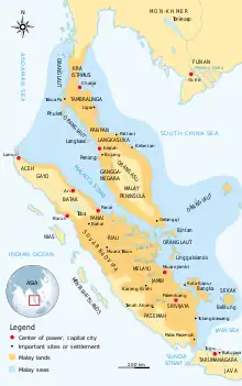 - Paul Wheatley (1961). The Golden Khersonese: Studies in the Historical Geography of the Malay Peninsula before A.D. 1500. Kuala Lumpur: University of Malaya Press. s. 80. OCLC 504030596.