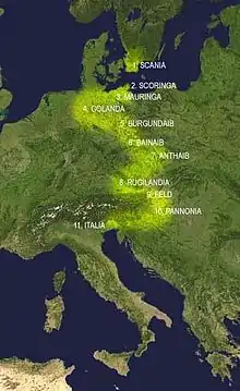 | nuværende Skandinavien, Tyskland, Østrig og Italien. | |