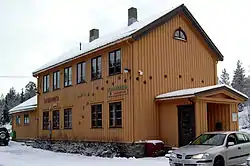 Stationsbygningen blev opført omkring 1936 efter tegninger af Bjarne Friis Baastad og Gudmund Hoel. Den toetages bygning blev opført i træ i laftekonstruktion og rummede oprindeligt ventesal, ekspedition og telegraf i stueetagen samt en tjenestebolig på første sal. Desuden var der en tilbygning i bindingsværk, der fungerede som pakhus. Bygningen blev revet ned i 2015.[1]