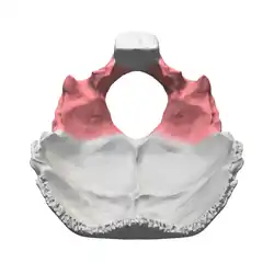 ![]() Nakkebenet, indre overflade. Laterale dele er vist med rødt. | |