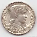 Kunstnerne bag designet er Gunārs Lūsis og Jānis Strupulis. På den ene side ser man i midten et billede af Letlands store våbenskjold og over det står der Letlands (LATVIJAS). Under våbenskjoldet står der årstallet for prægningen og der under republik (REPUBLIKA) årstallet for prægningen.