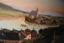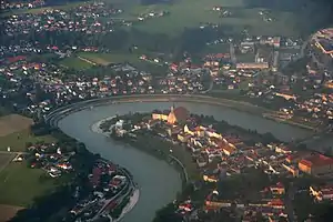Den gamle bydel fra det 15. århundrede, er på de tre sider omgivet og beskyttet, af et sving på Salzach – Salzach-Flussschleife. Kun den sydlige afgrænsning med „oberen Stadttor“ båtte befæstes med en bymur.