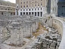 - Det romerske amfiteater ved Sant'Oronzo-pladsen er fra det 2. århundrede . Det kunne rumme flere end 25.000. Det er kun delvist tilgængeligt, fordi der senere er bygget til.
