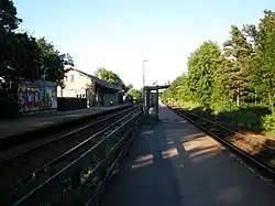 På den nordlige perron (spor 1) ligger stationsbygningen, der i dag er indrettet til bibliotek, mens der i en mindre bygning på perronens vestende er en café. Yderligere vest herfor er en nyere parkeringsplads, der blev anlagt for at supplere den mindre på nordsiden af Stationsvej. Foran stationsbygningen er fortovet udvidet, så der er plads til at hente og bringe passagerer med bil og bus.