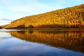 ![]() Efterårsfarver ved floden Lemmenjoki i Lemmenjoki Nationalpark i Finland | |