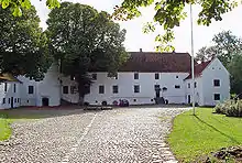 Hovedbygningen ligger på et middelalderligt voldsted med voldgrave og er fra 1540'erne. Det blev udbygget i Jørgen Lykkes tid i sidste halvdel af 1500-tallet, medens den oprindelige ladegård brændte i 1689.