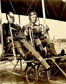 Kaptajn Charles Chandler (med prototype af Lewis maskingevær) og løjtnant Roy Kirtland i en Wright Model B Flyer efter den første vellykkede affyring af et maskingevær på et fly i juni 1912.
