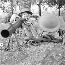 Rekrutter fra Singapore Volunteer Force træner med et Lweis maskingevær, 1941.