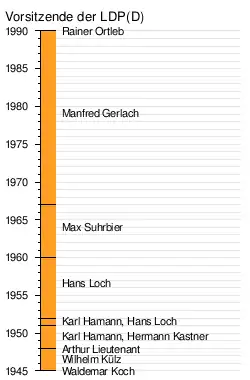 Waldemar Koch (1945) Wilhelm Külz (1945–1948) Arthur Lieutenant (1948) Karl Hamann (1948–1952) Hermann Kastner (1949–1950) Hans Loch (1951–1960) Max Suhrbier (1960–1967) Manfred Gerlach (1967–1990) Rainer Ortleb (1990) |