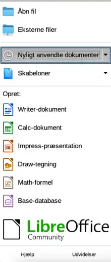 Programpakken LibreOffice består af seks programmer,[13] som er: