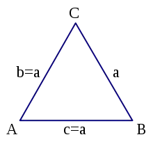 Ligesidet trekant med siderne a,b og c overfor hhv. vinkel A, B og C.